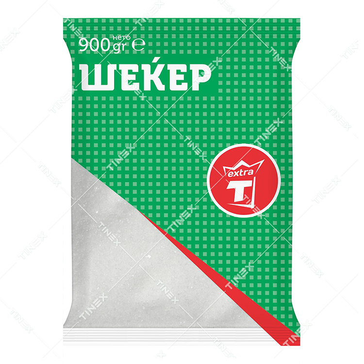 ШЕЌЕР ЕКСТРА Нето: 900гр. Шеќер. Употребливо до: означено на амбалажата. Увозник: Варимпекс Скопје, ул. Партизански Одреди 18/4, 1000 Скопје, Македонија. Пакува: Тинекс МТ, ул. Васил Ѓоргов бр. 16/1, 1000 Скопје, Македонија.